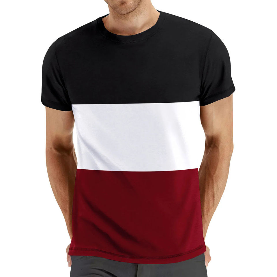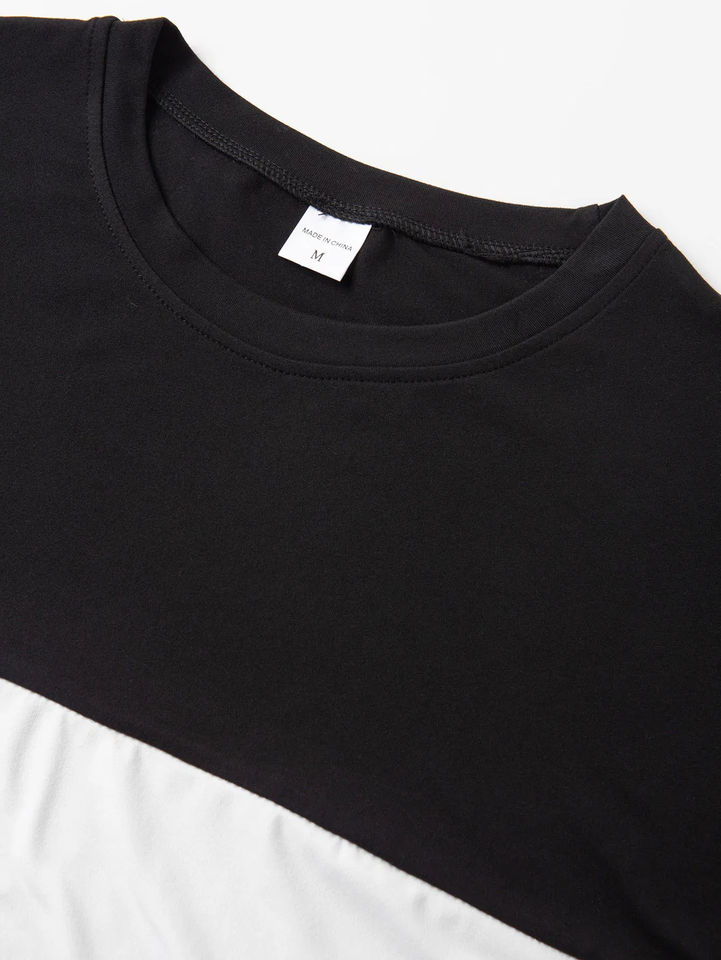 Tendance Couleurs Mens Color Block Patchwork Basic Vintage Print Heavyweight Relaxed Fit T-Shirt