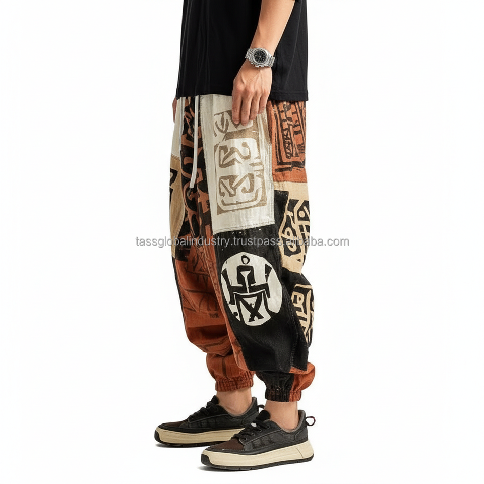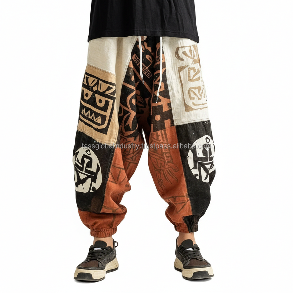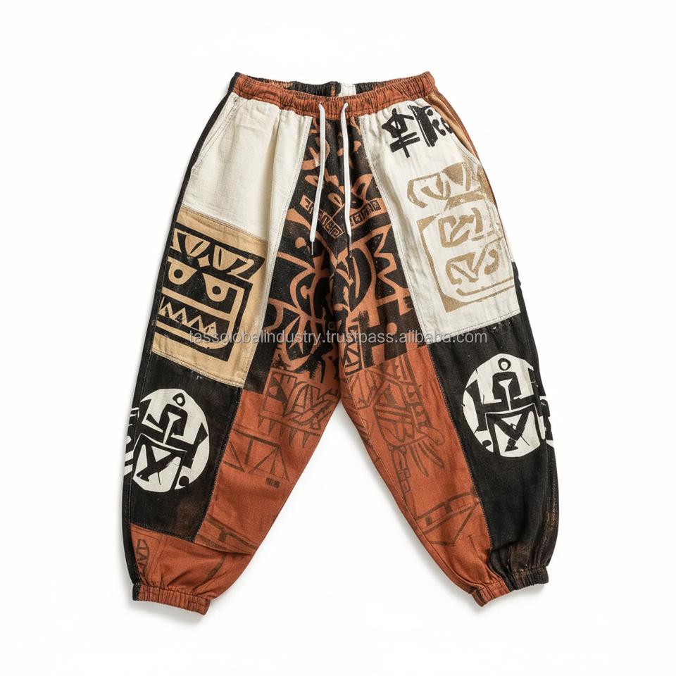 Pantalon Harem Hip Hop Baggy Oversize Taille Mi-Haute en Toile Patchwork Tendance Streetwear 100% Coton Respirant Séchage Rapide