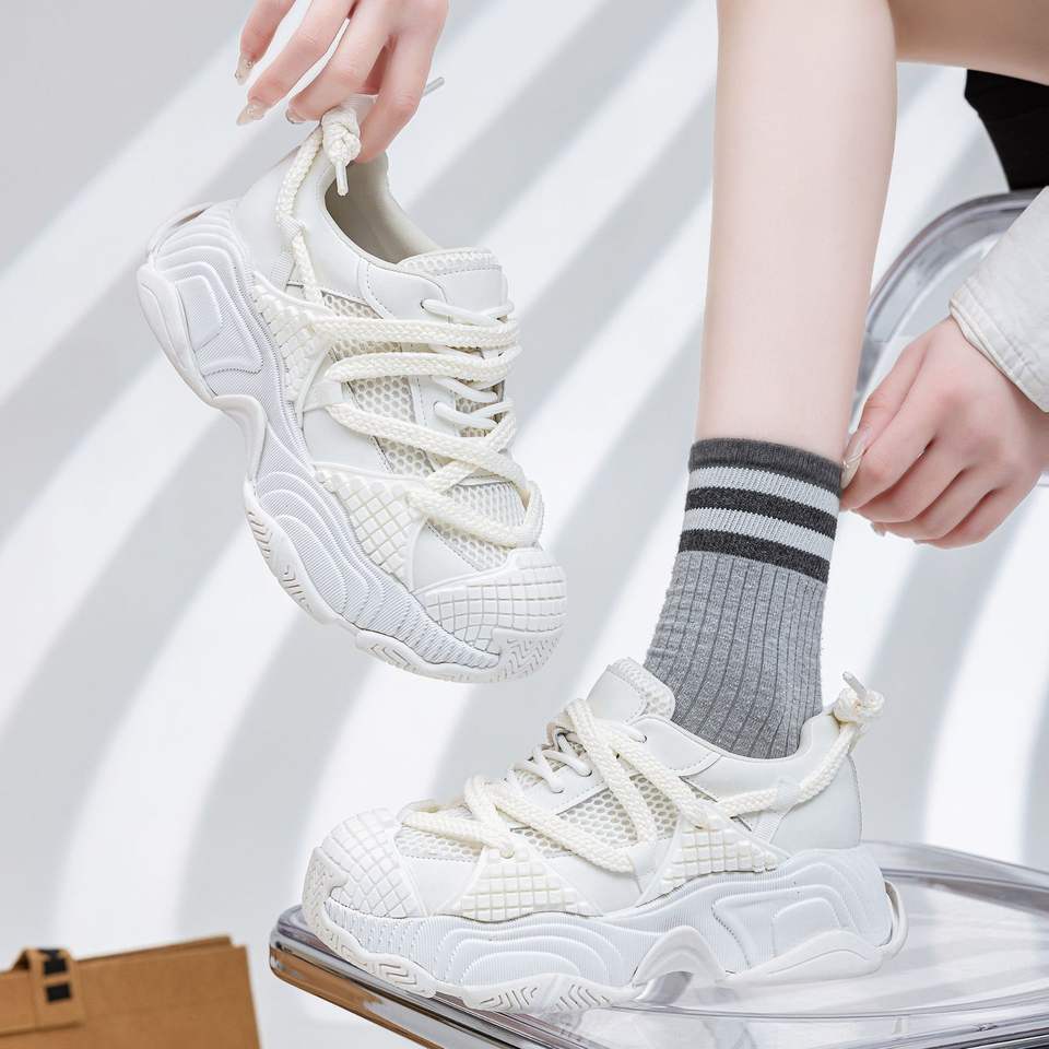 Tendance nouveau Design maille chaussures de course fond épais à lacets grosses baskets femmes marche Style chaussures fournisseur
