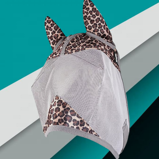 Masque anti-mouches pour cheval TrendX à oreilles longues, en maille légère avec panneaux d'oreille design