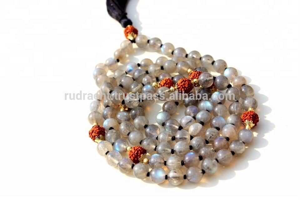 Chapelet tendance 2023 perles Labradorite noué Mala collier bijoux Yoga indien spirituel Mala perles 108