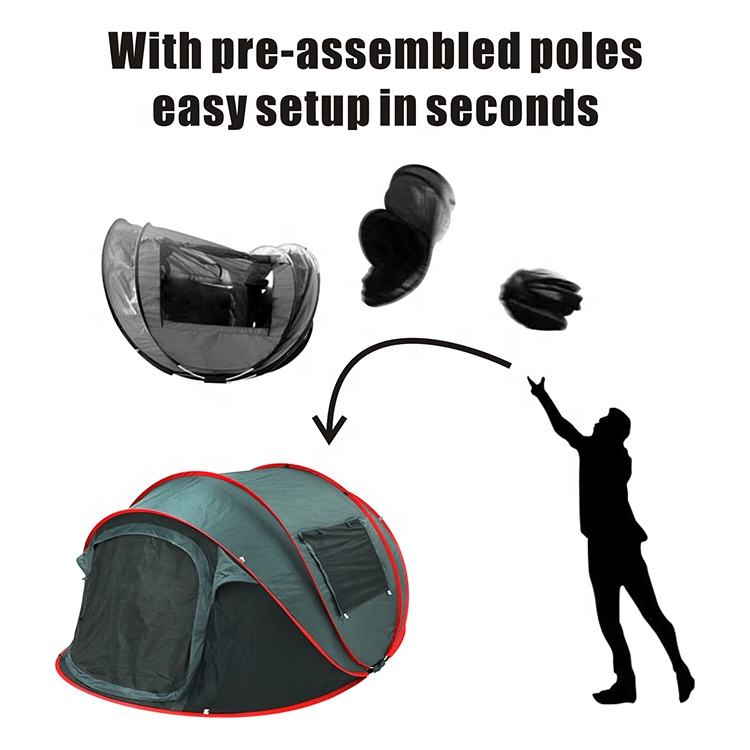 Tendance tente de camping automatique pop-up pour 3-4 personnes taille familiale tente portable pliante en tissu de nylon en aluminium pour une utilisation estivale