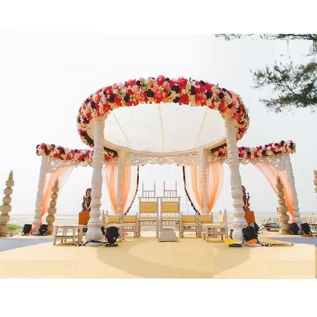 Décoration de mandap de mariage tendance au bord de la plage, meilleur pavillon extérieur pour les événements de destination, mandap moderne en fibre, Uk DST ExportsUK