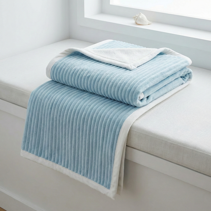 Product name:3D Jacquard Ribbed Striped Flannel Fleece Bonded Shu Velveteen Blanket
