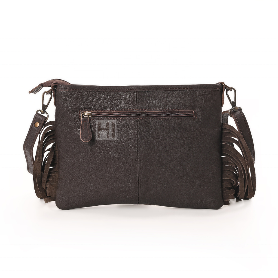 Petit sac à bandoulière en cuir de vachette occidental avec patchs gravés à la main pour femme