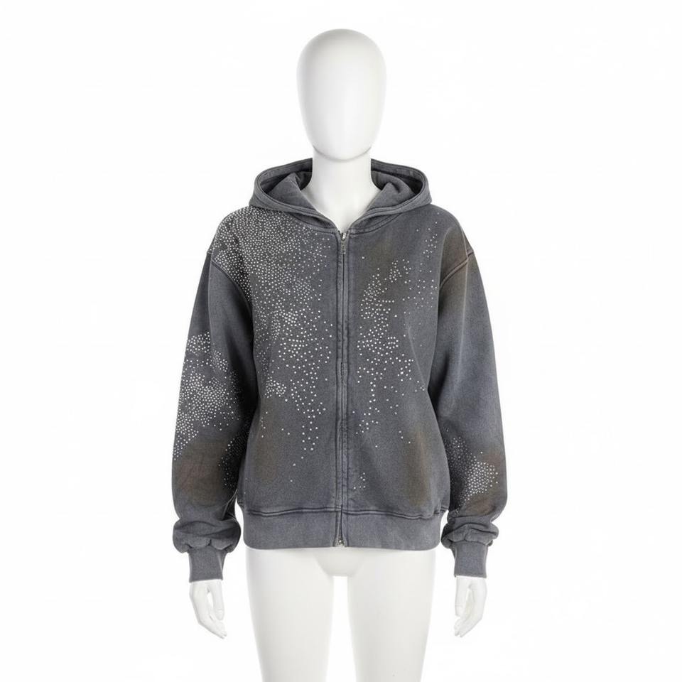 Sweat à capuche tendance avec effet délavé à l'acide et décoloration au soleil, design tendance, tissu chaud, fermeture éclair, pour un usage décontracté ou sportif, unisexe