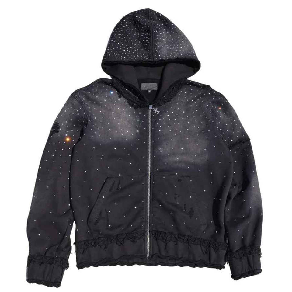 Sweat à capuche tendance personnalisé avec strass effet délavé, style streetwear décontracté, 100% coton, épaules tombantes, unisexe