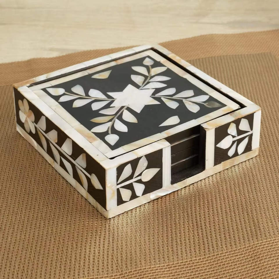 Sous-verre tendance en os incrusté pour tasse à thé, sous-verre artisanal en os pour la maison, à prix de vente direct