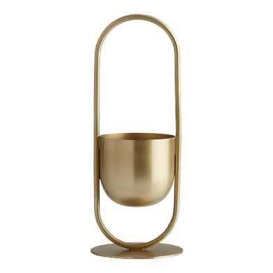 Jardinière en métal au design tendance, légère mais robuste, avec support pour un déplacement facile et un support de plante durable
