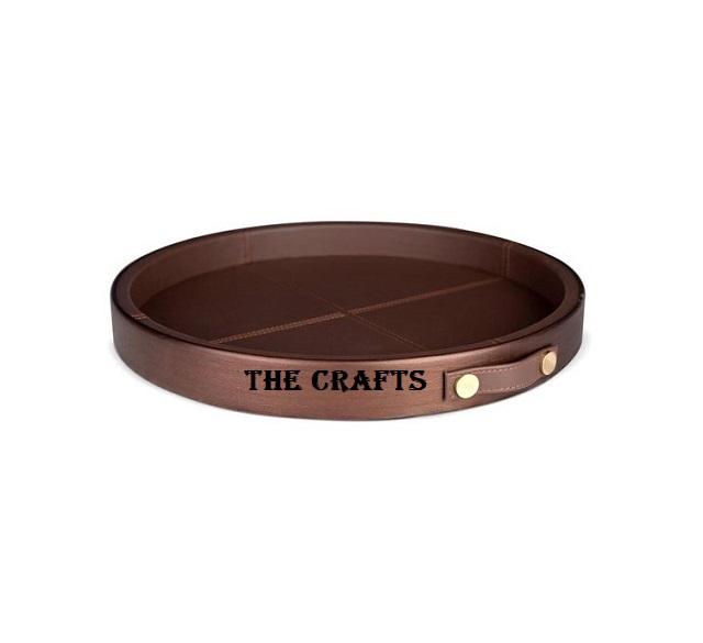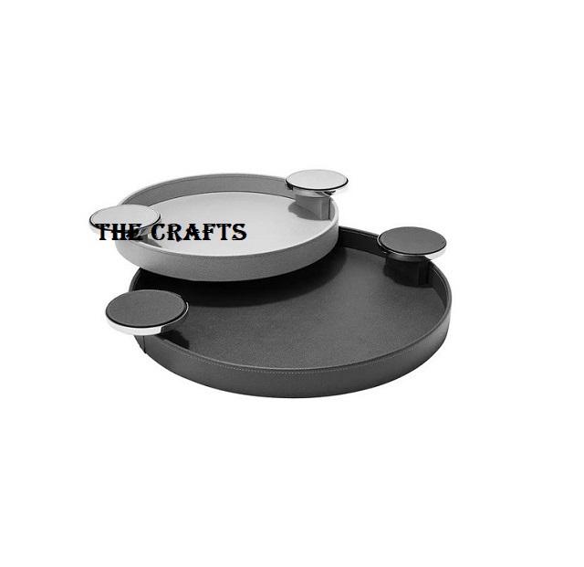 Plateau de service pour collations en métal et en cuir de conception tendance ensemble de deux plateaux de chocolats de forme ronde à des prix acceptables