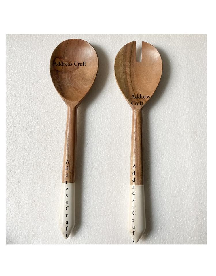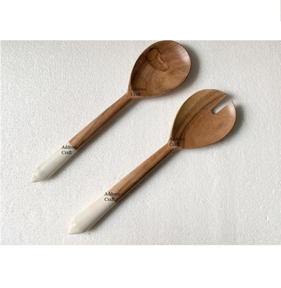 Tendance Design Résine Poignée Salade Serveur Cuillère Fourchette Ensemble Personnalisé Salade Outils Cuillère Fourchette Vaisselle Couverts En Bois