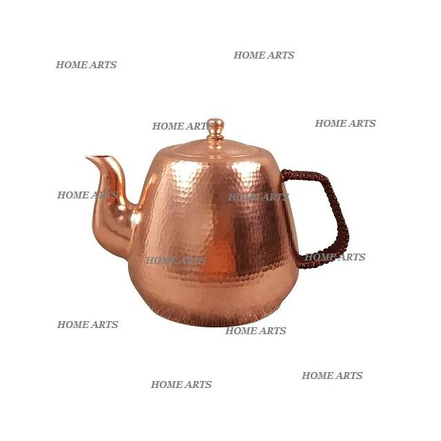 Bouilloire de service à café de forme ronde de conception tendance en bouilloire martelée en cuivre avec poignée en bois et laiton en Inde