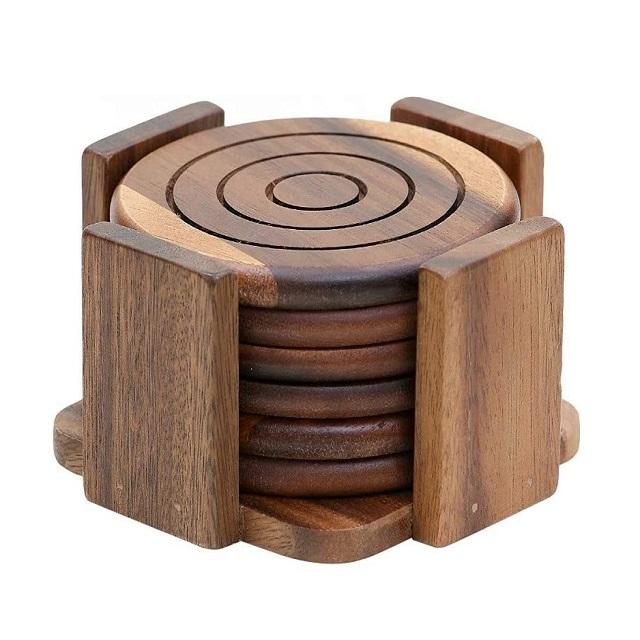 Ensemble de sous-verres en bois et métal, design moderne, qualité supérieure, forme ronde, sous-verres pour verres, vente en gros