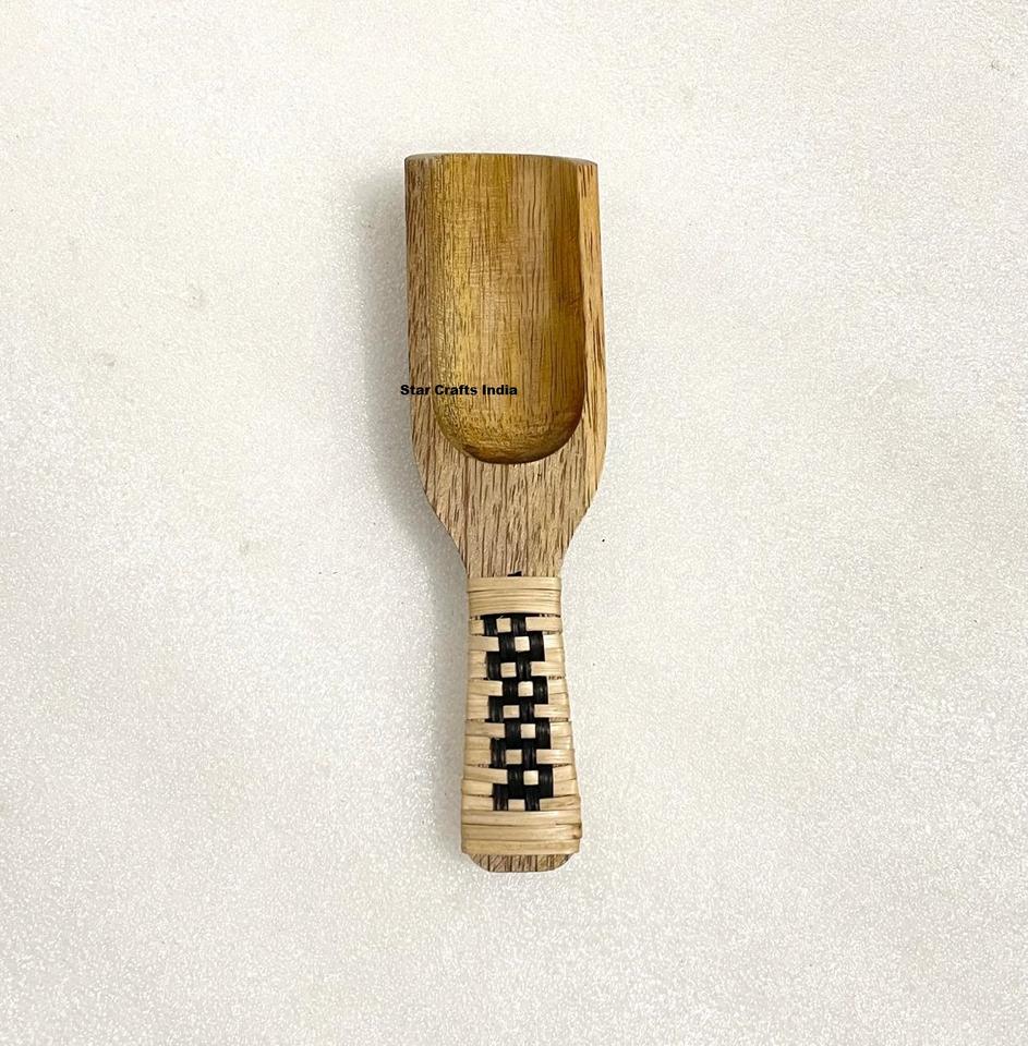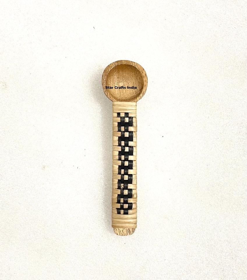 Cuillères doseuses modernes en bois écologiques et tendance, avec manche en rotin tressé, pour épices, parfaites pour un cadeau de pendaison de crémaillère