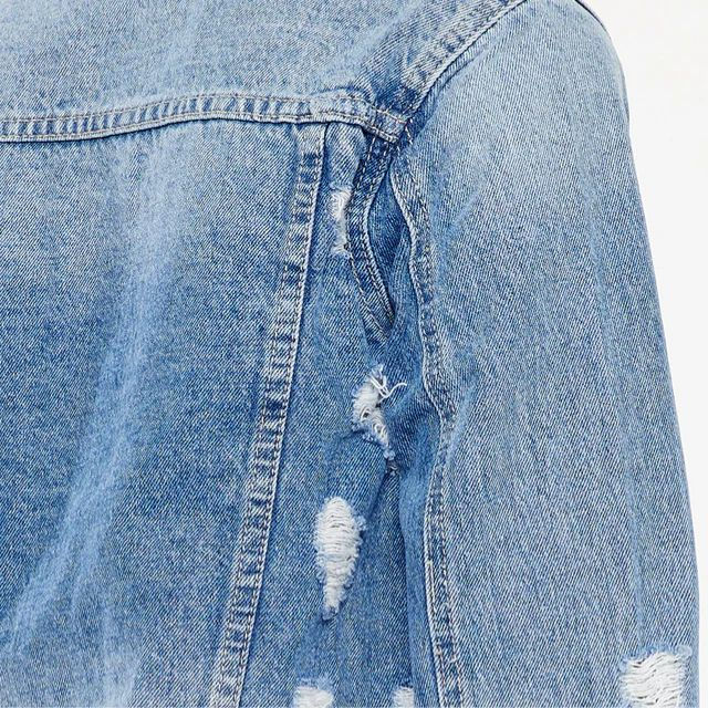Vestes courtes en denim délavé tendance européennes et américaines, coupe ajustée, veste bleue tendance pour femmes, denim brut avec trous bleus