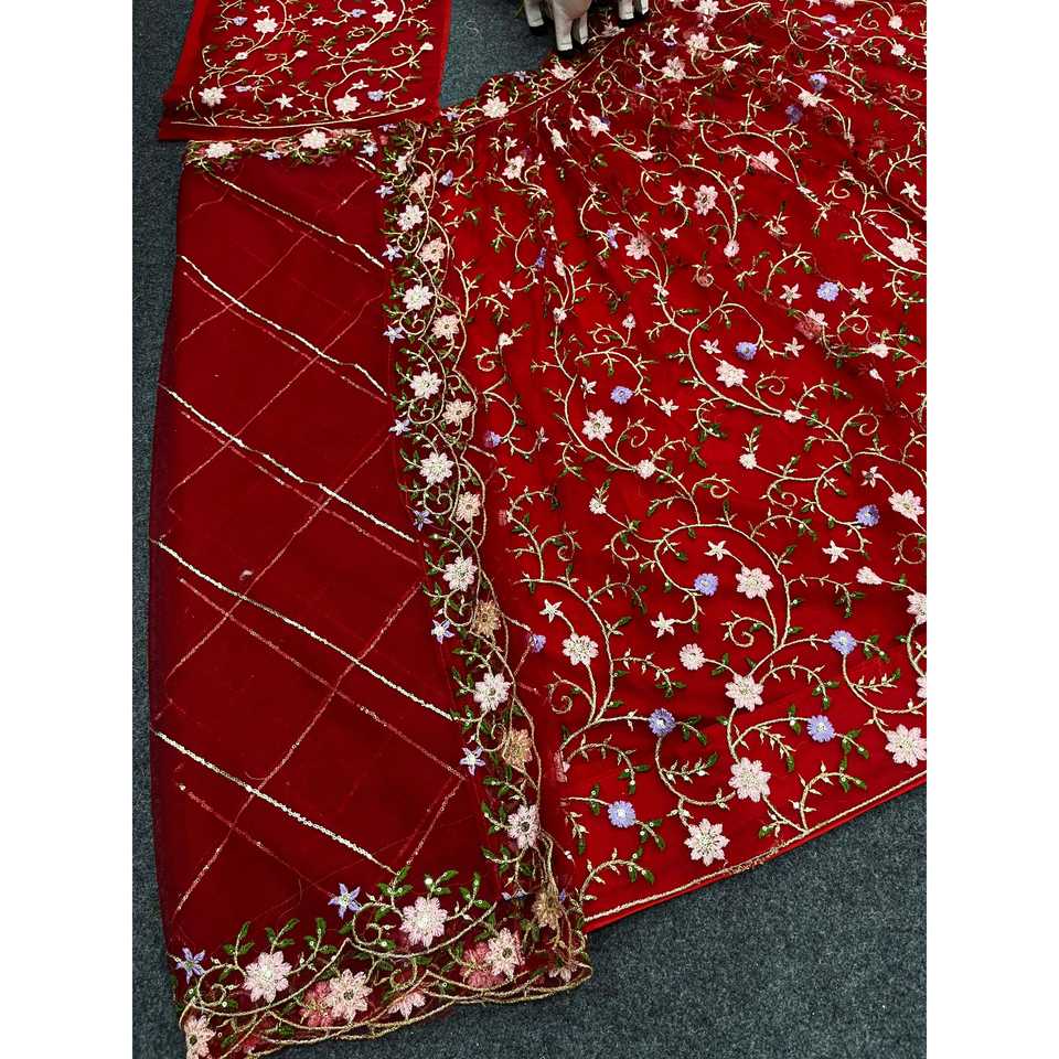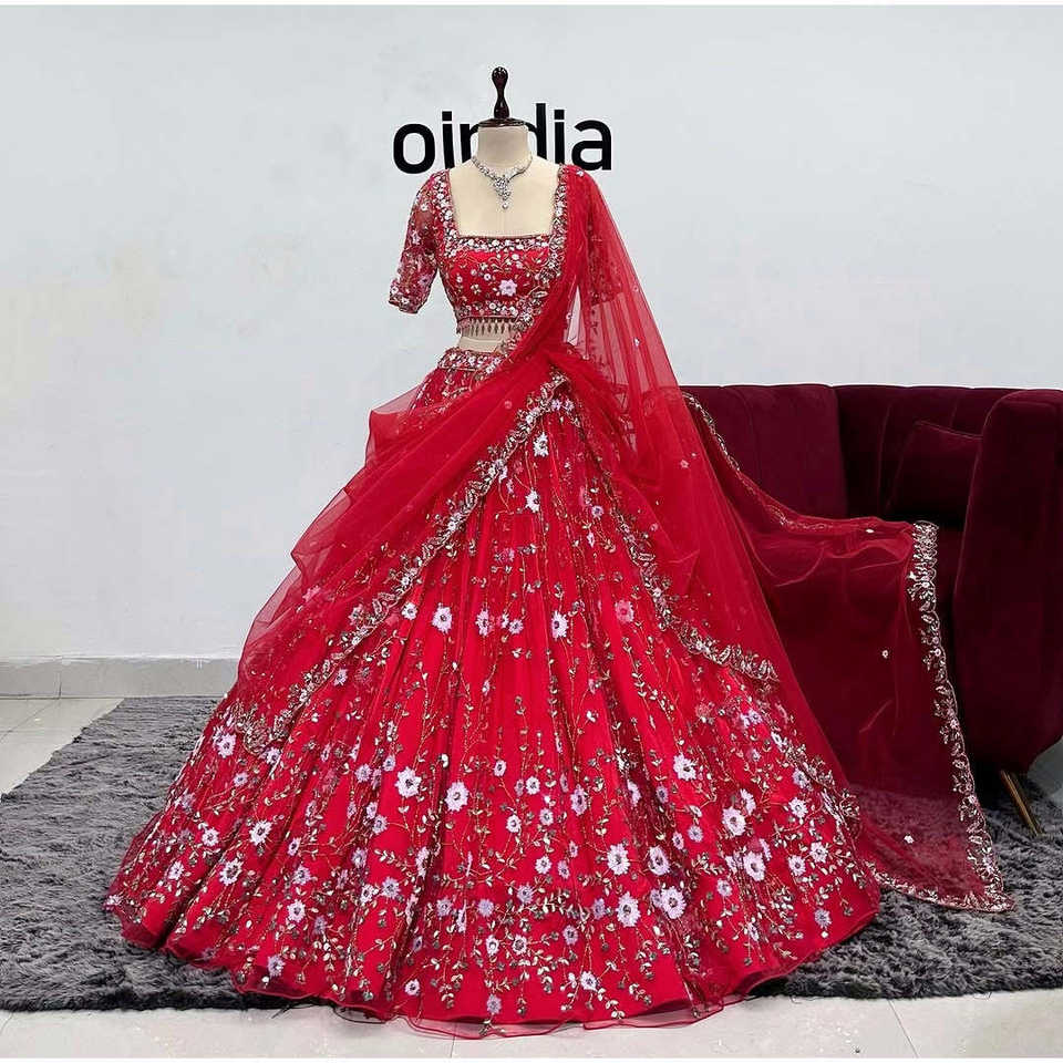 Tendances Robes de soirée Broderie Paillettes Travail Lehenga Choli & Dupatta