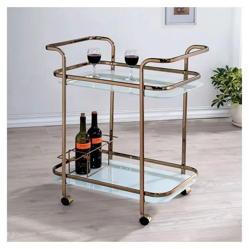 Chariot de service en céramique écologique fait à la main, finition dorée tendance, nouvelle arrivée avec barre ronde et plaqué sûr, Zahid Exports
