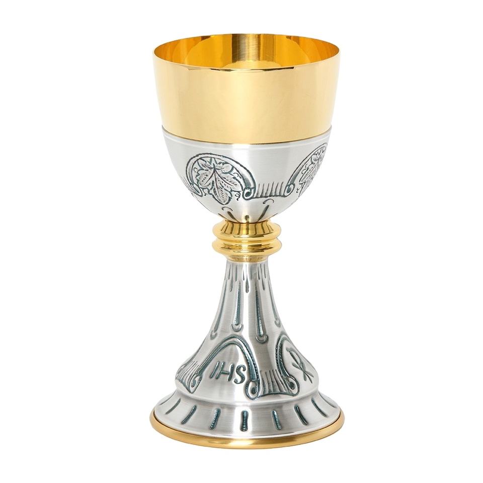 Calice tendance couleur étain doré, personnalisé avec un motif en relief, fabriqué à la main en laiton de haute qualité pour l'église et les cadeaux.