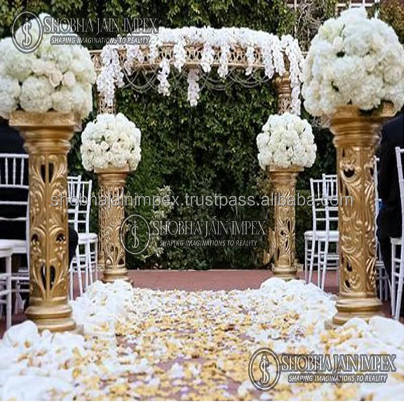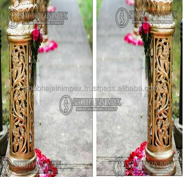 Product name:Golden Carved Wedding Walkway Pillar With Ganesha Statues