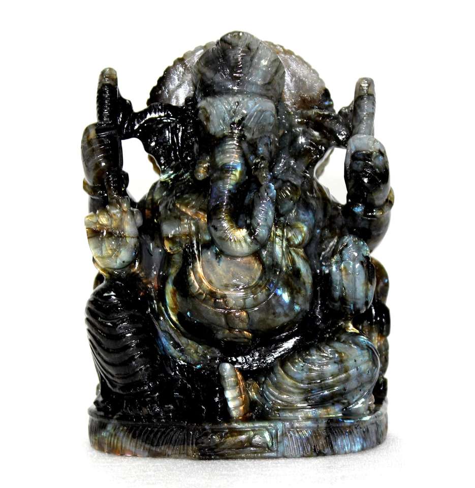 Trending Hand-carved Ganesha Labradorite Figurine Hindu God Sculpture Piedras naturales Crystal Healing Stone
