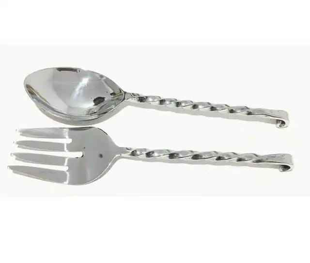 Ensemble de couverts tendance faits à la main, poli, durable, serveur à salade avec manche, serveur à salade et cuillère de service en acier inoxydable, artisanal