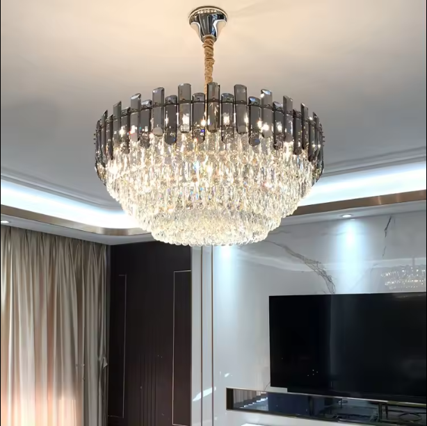 Solutions d'éclairage service:Éclairage et conception de circuit, Lumière dessin et conception, Éclairage de projet de conception, Lustre rond en cristal de fer gris k9