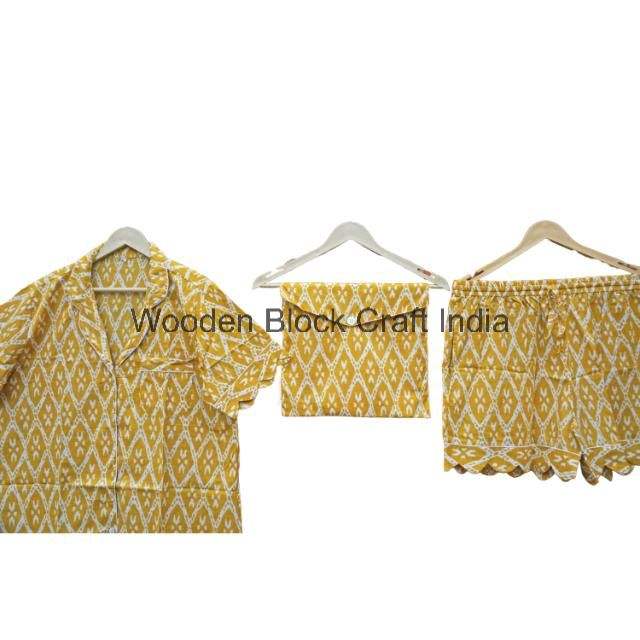 Tendance indien fait à la main Vintage belle courte tenue de nuit femmes main bloc imprimé coton Kangura pyjama ensemble pour l'automne
