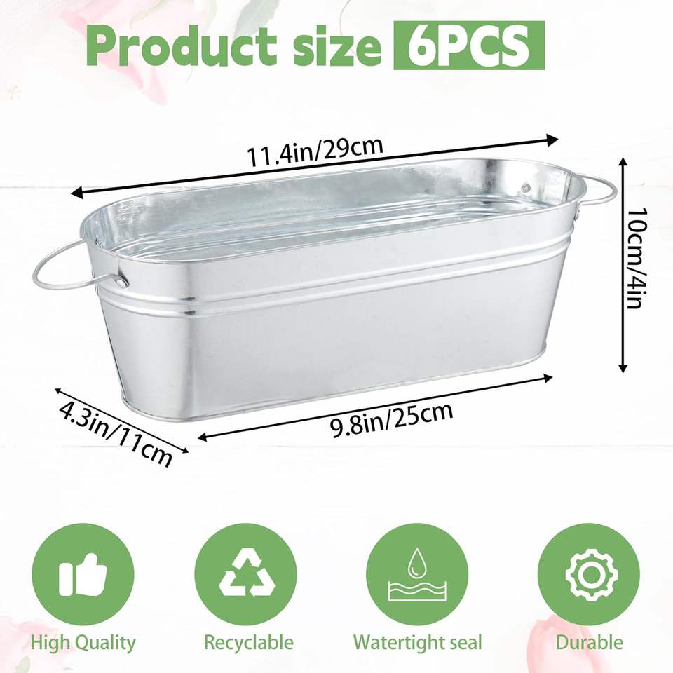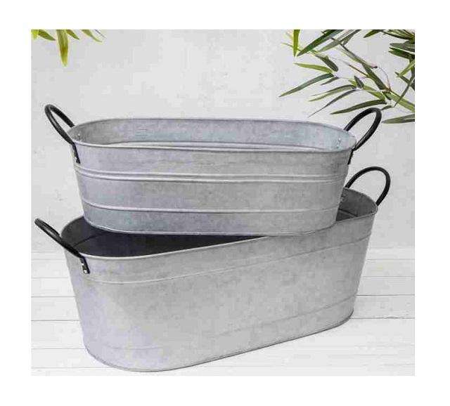 Jardinière de fleurs galvanisée en fer tendance avec poignée forme ovale pour jardinières décoratives extérieures de balcon de jardin