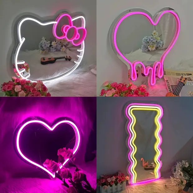 Miroir Néon Anime Kuromi Tendance - Lumière Murale Kawaii Personnalisable et Dimmable pour Décoration de Magasin