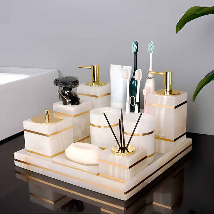 Trending Luxury Five-piece Eco-Friendly Customizable Bathroom Set Elegant White Accessories Hotel & Home Bathrooms