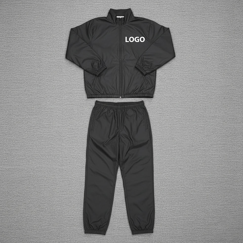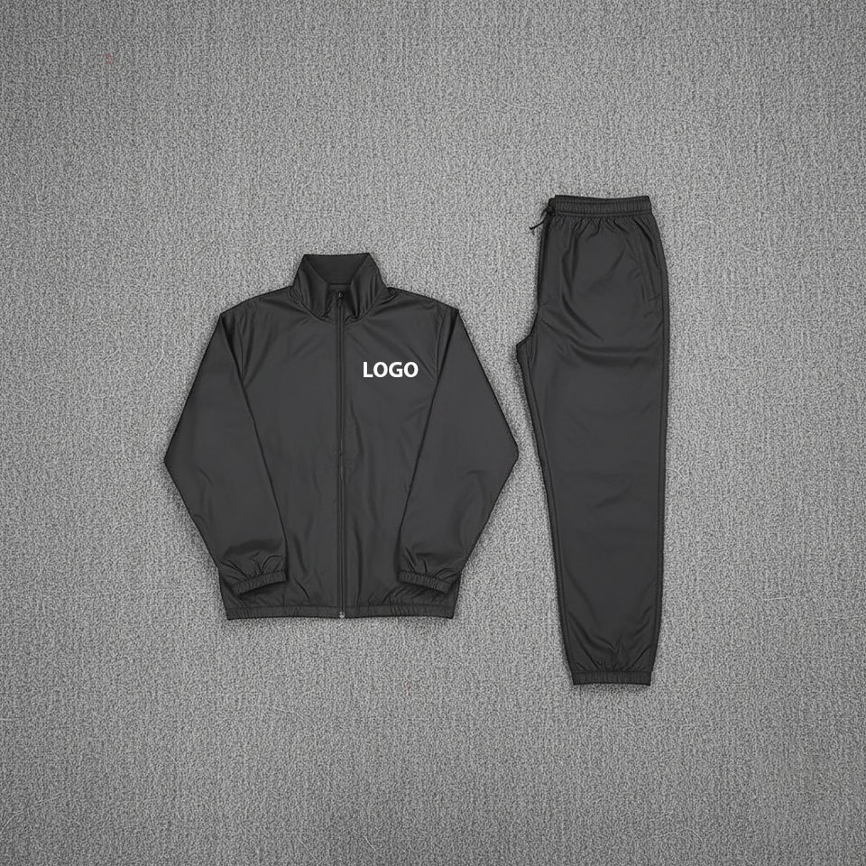 Tendance Hommes Polyester Jogger Sets Deux Pièces Zip Up Nylon Survêtements Premium Qualité Logo Personnalisé Noir Nylon Survêtement