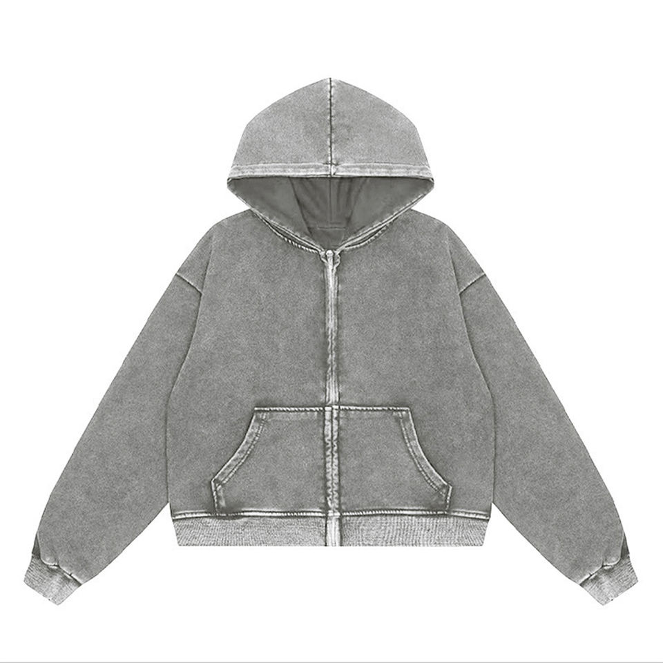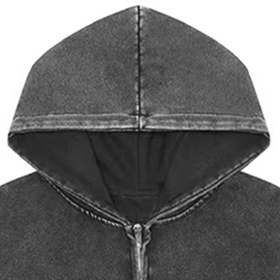 Hoodie oversize tendance pour homme, délavé à l'acide, décontracté, à manches longues, 100% coton molletonné, épaules tombantes, fermeture éclair, style streetwear
