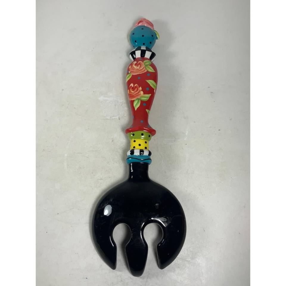 Serveur à salade en céramique multi-imprimés tendance, design floral fait à la main, ustensiles de cuisine faits à la main