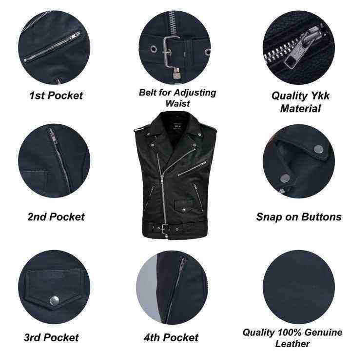 Nom du produit:Veste / Gilet sans manches en cuir véritable pour homme
