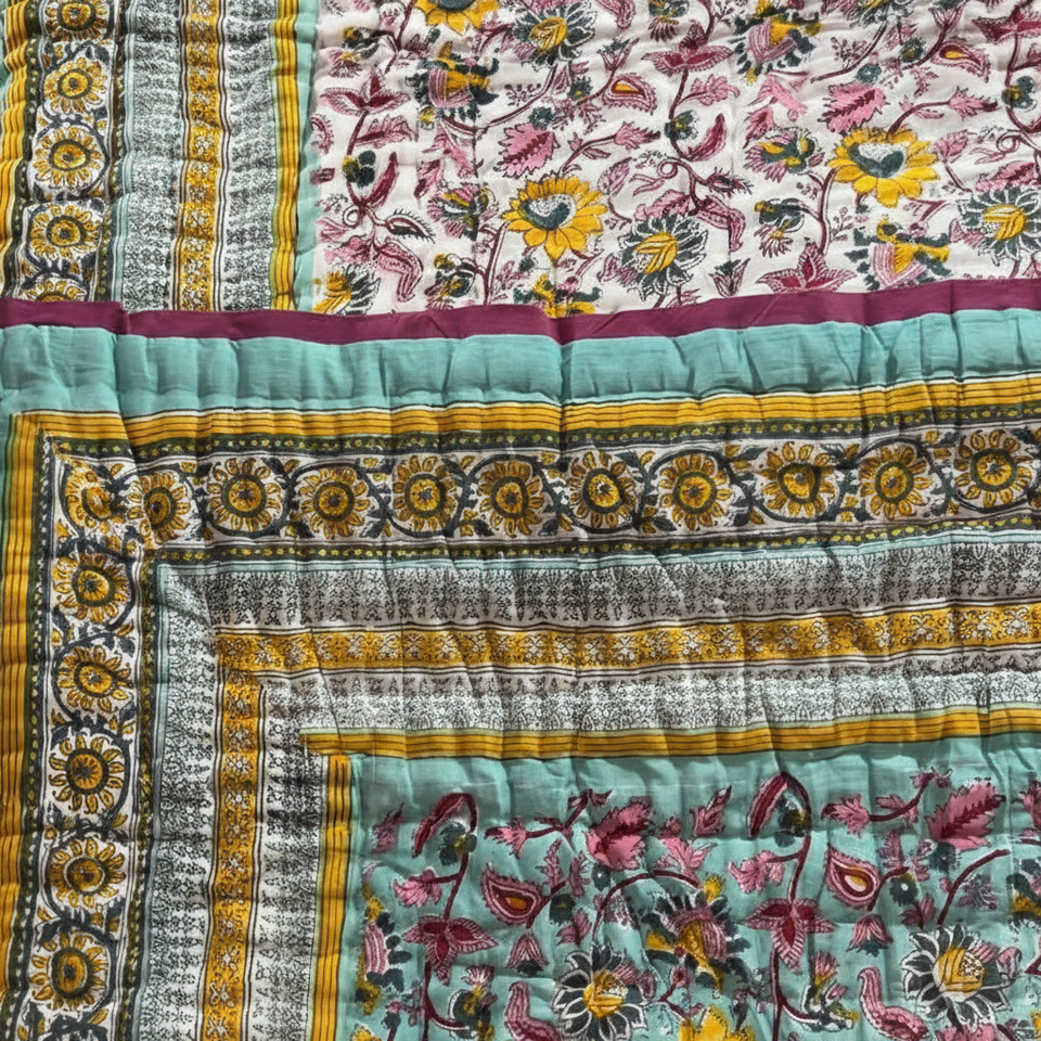 Couverture Kantha Bio Imprimée au Bloc