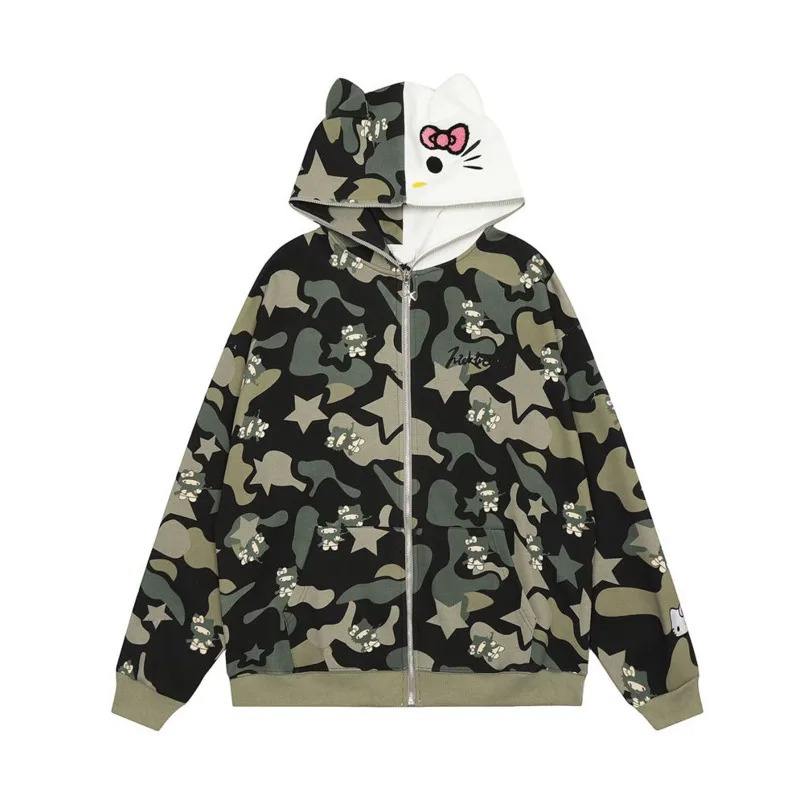 Trending Product Print Camouflage Hooded Zipper Cardigan Women Trend Japanese Style Casual Coat Vintage Hoodie for Women's