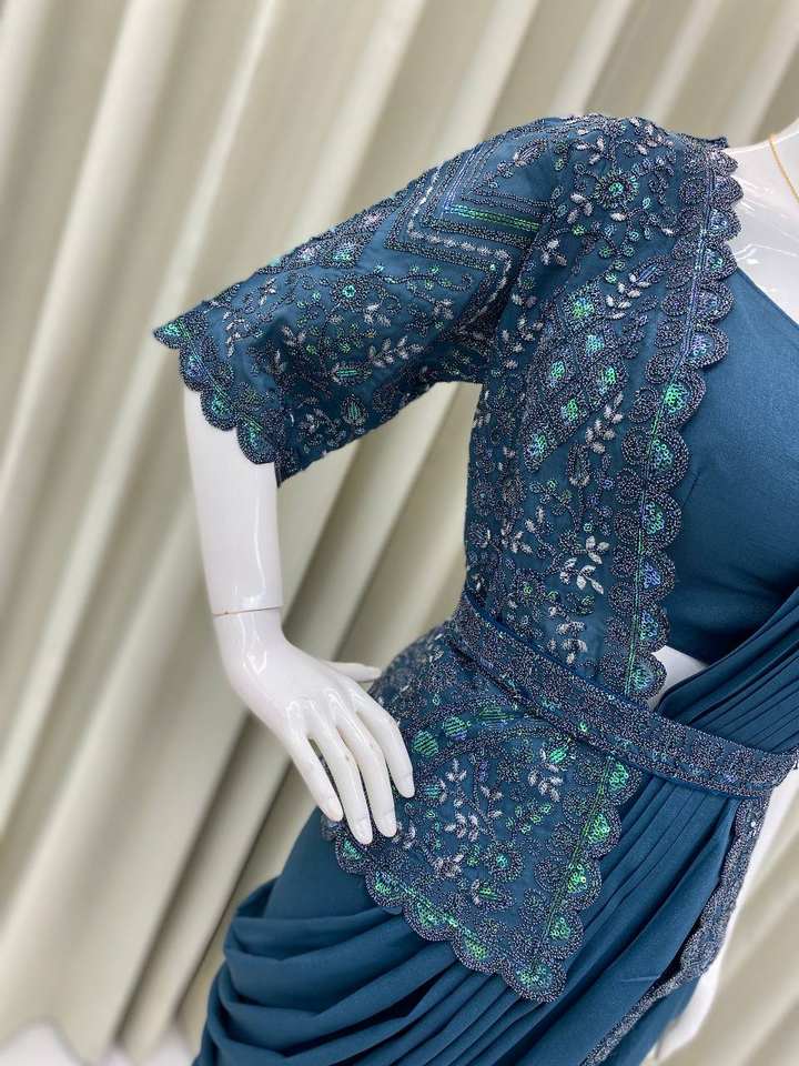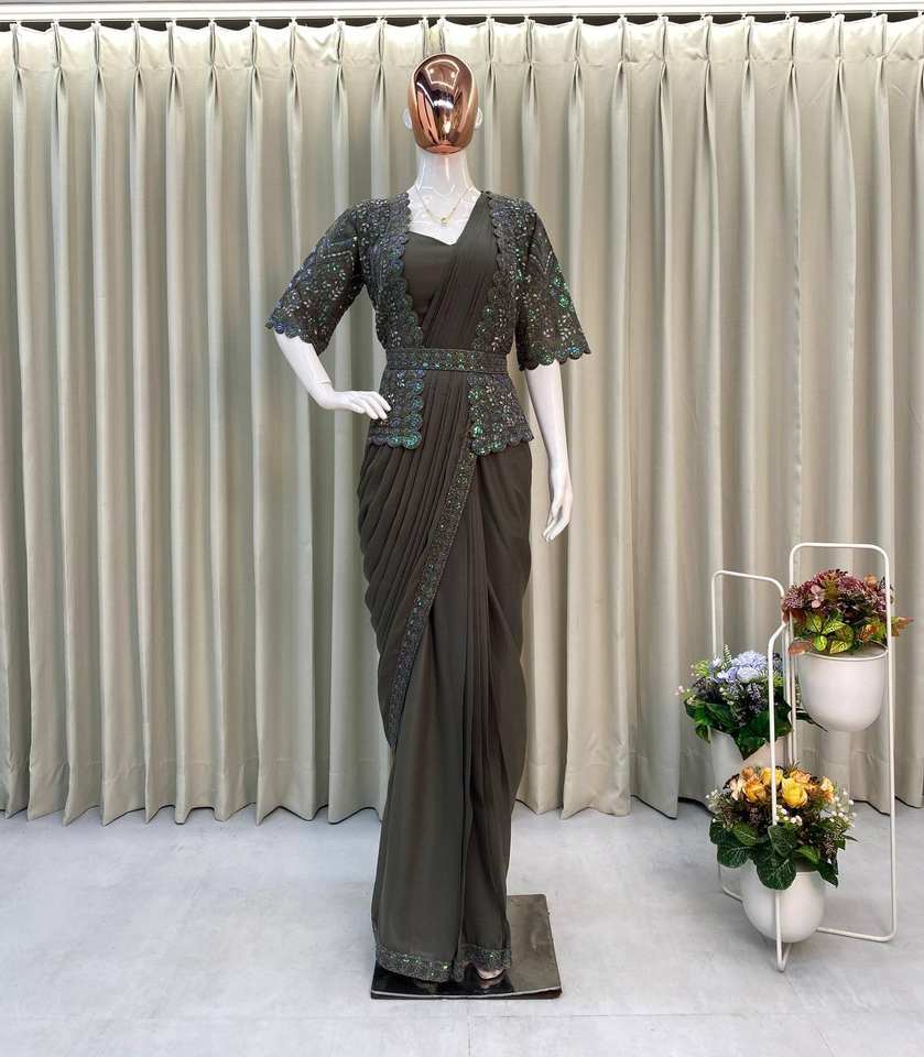 Tendance Prêt à porter Star Georgette Sequin Saree avec Koti et chemisier entièrement cousu Fancy Party Wear Saree Set Fabriqué en Inde