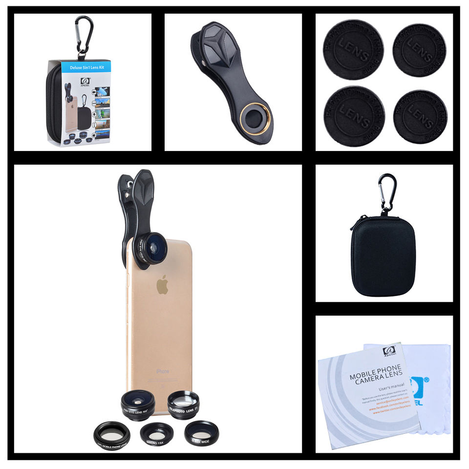Nouvel objectif de téléphone appareil photo amovible haut de gamme, kit d'objectif fisheye 5 en 1 pour tous les mobiles
