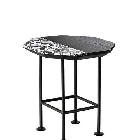Table basse moderne en aluminium tendance, design martelé, plateau en marbre, style farmhouse, pour la décoration de jardin