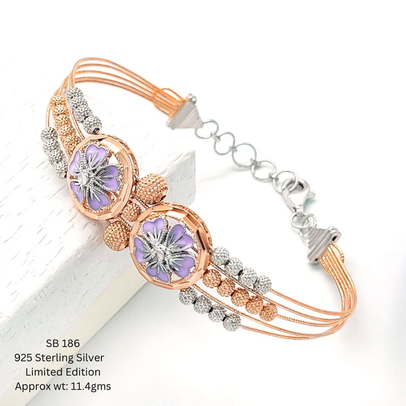 Nom du produit:92.5 Pureté lavande émail fleur plaqué or bracelet