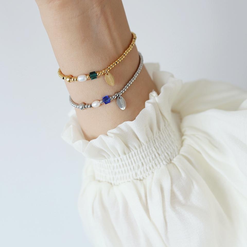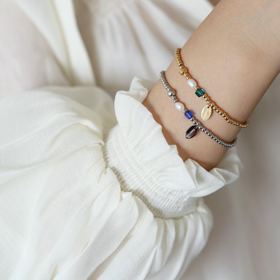 Trending Stainless Steel Fashion Jewelry 2022 18k Gold Plated Good Luck Pearl Stone Beads Adjustable Bracelets Women