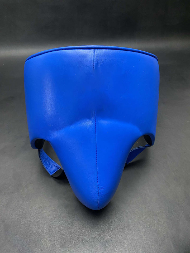 Ensemble de boxe professionnel tendance : Gants, casque et protège-guêtres en cuir bleu de qualité supérieure pour l'entraînement et le sparring