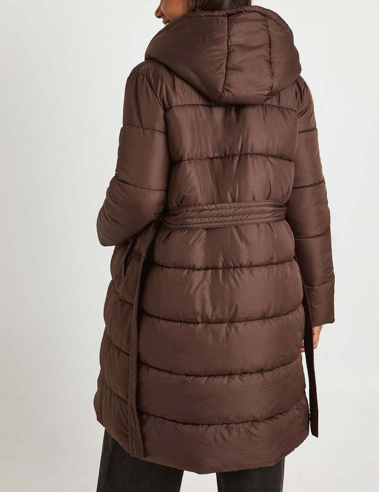Veste matelassée pour femme tendance, couleur marron unie, tissu respirant, épaisse, chaude, matelassée, surdimensionnée, boutonnée, longue, style bulle