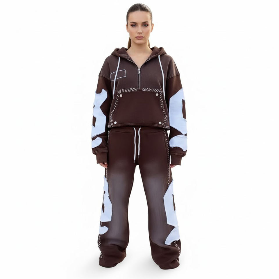 Survêtement tendance avec impression délavée, broderie, 100% coton molleton, grammage élevé, design entièrement personnalisé