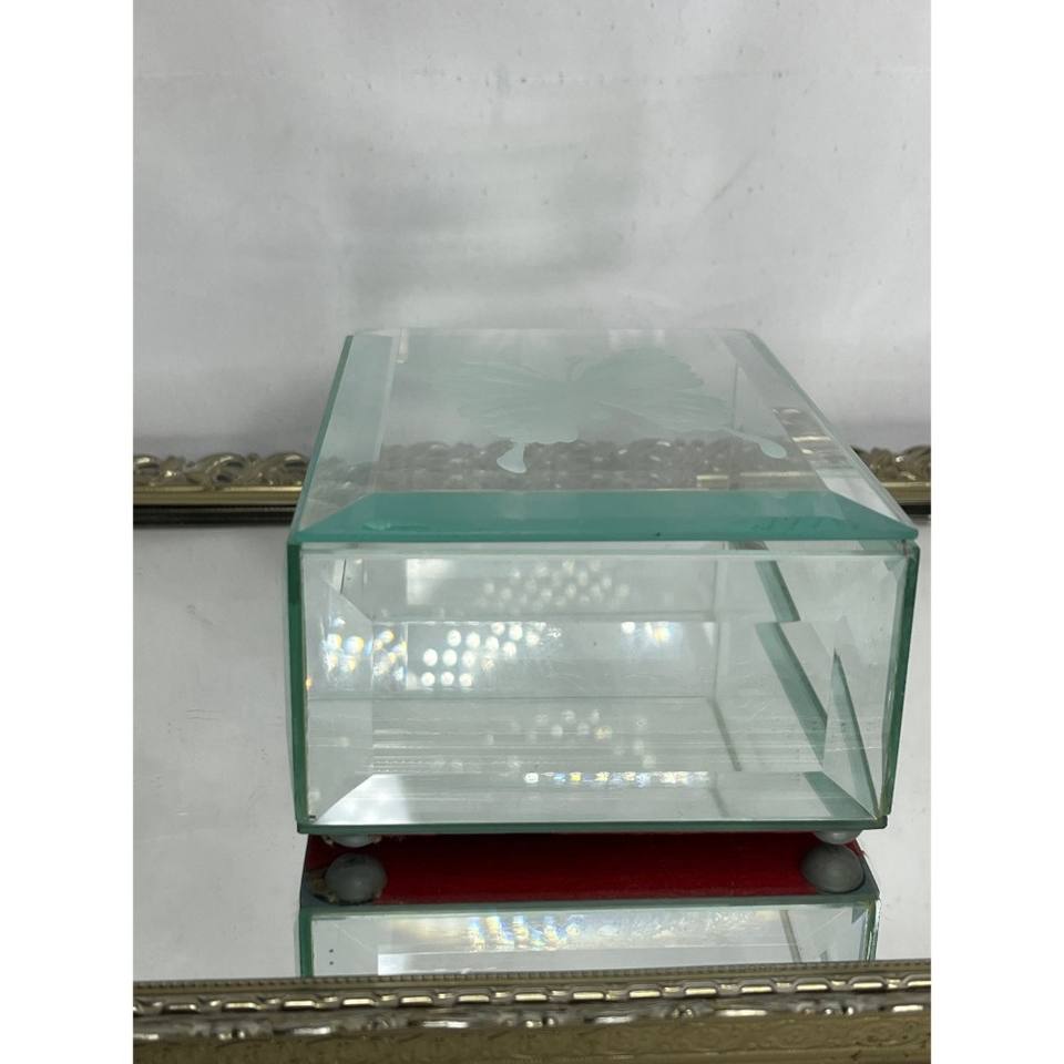Boîte à bijoux vintage à couvercle en verre taillé miroir tendance avec motif papillon givré