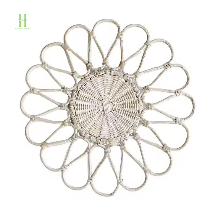 Plaques de chargeur en rotin lavé blanc tendance napperon en rotin Boho napperon Offre Spéciale OEM plaque de chargeur en osier avec quantité minimale de commande bas