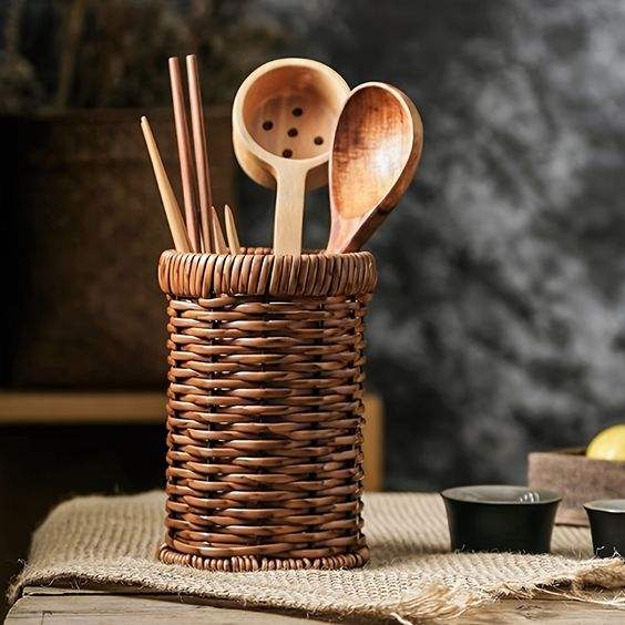 Tendance Osier Rotin Couverts Couverts Titulaire Caddy Écologique Vaisselle Titulaire Fourchette Cuillère Titulaire Restaurant Fournitures de SCI