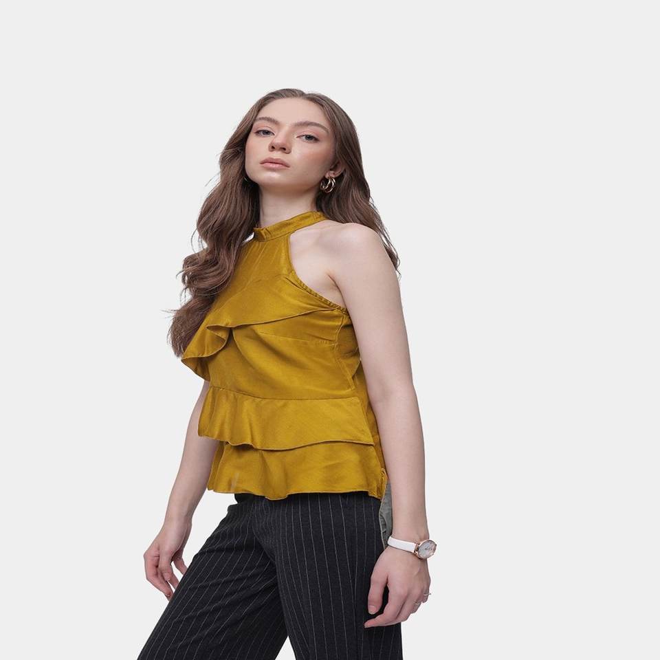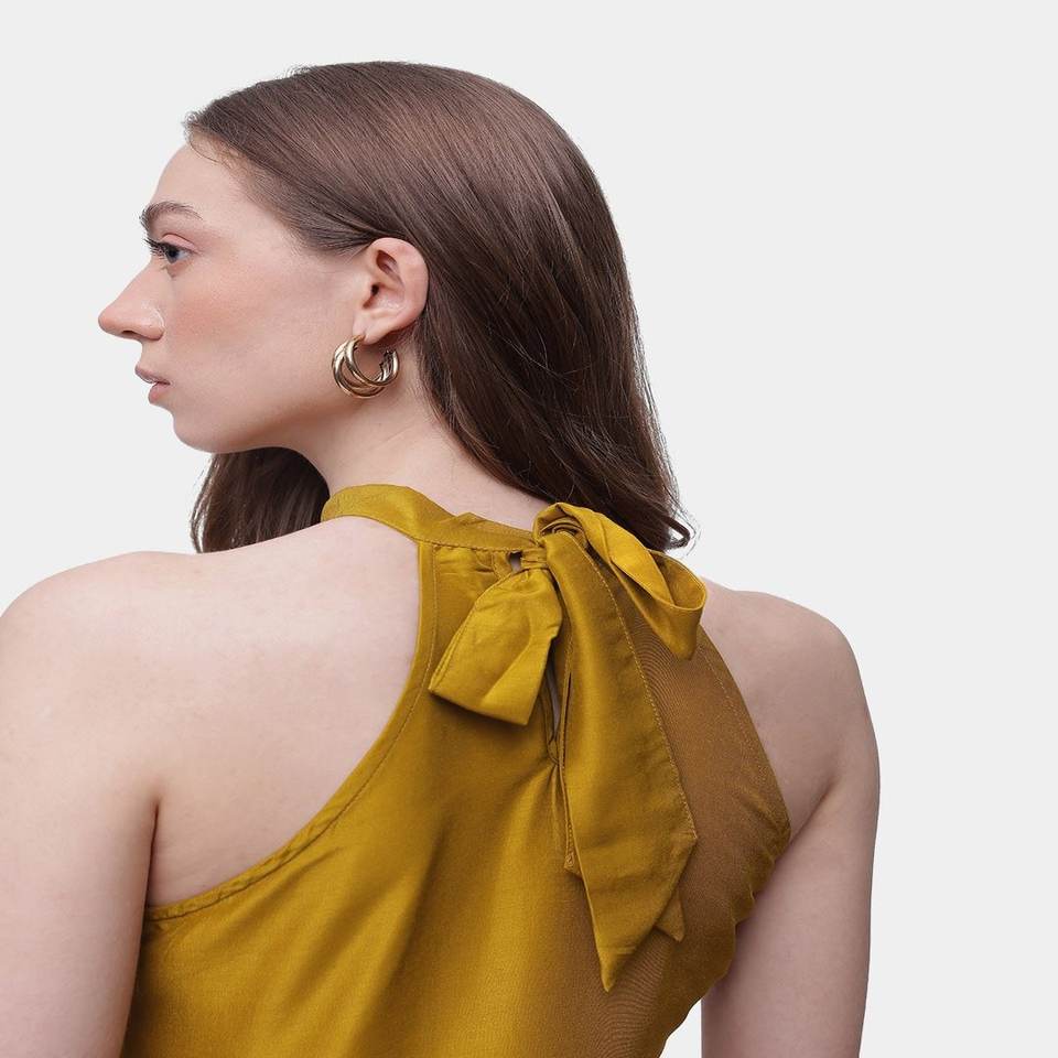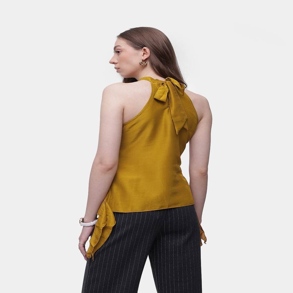 Tendance tissé à volants licou cou sans manches Design haut pour les femmes personnalisé haut court élégant dentelle nœud Paisley vêtements faits à la main