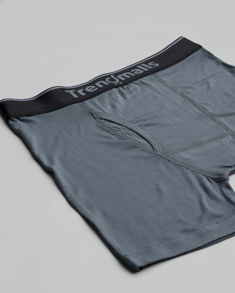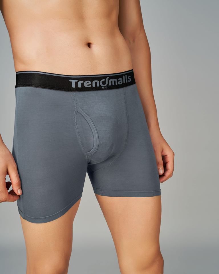 Trendmalls Men's Birla Microfiber Mid-Rise Breathable Knitted Boxer Trunk Waist Logo Combed Elastane Stretch Solid Grey
