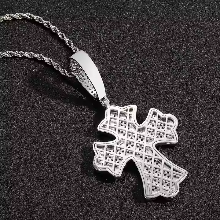 À la mode 1 pouce Lab Grown Cut Diamant Argent Plaqué Croix Pendentif Collier Hip Hop Style Religieux À La Mode Maintenant Disponible USA